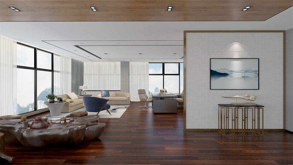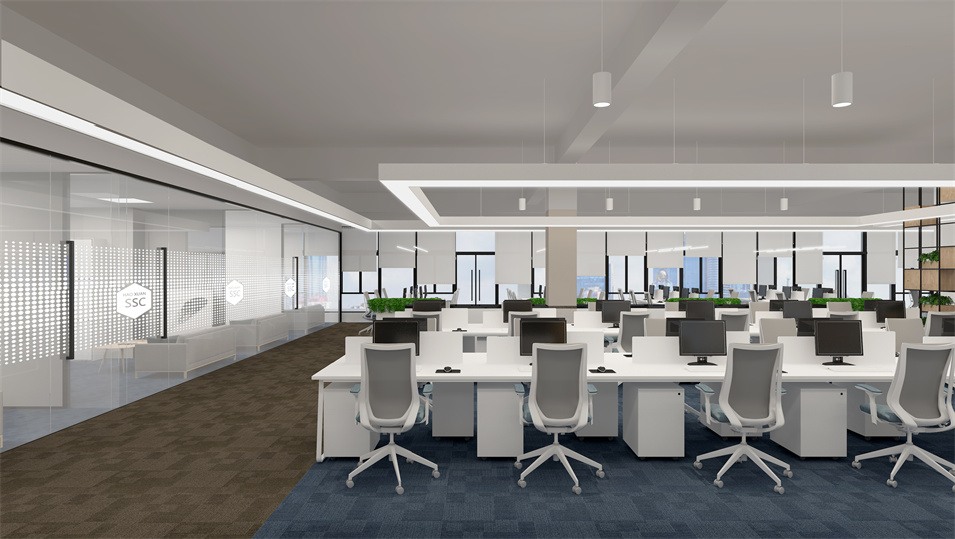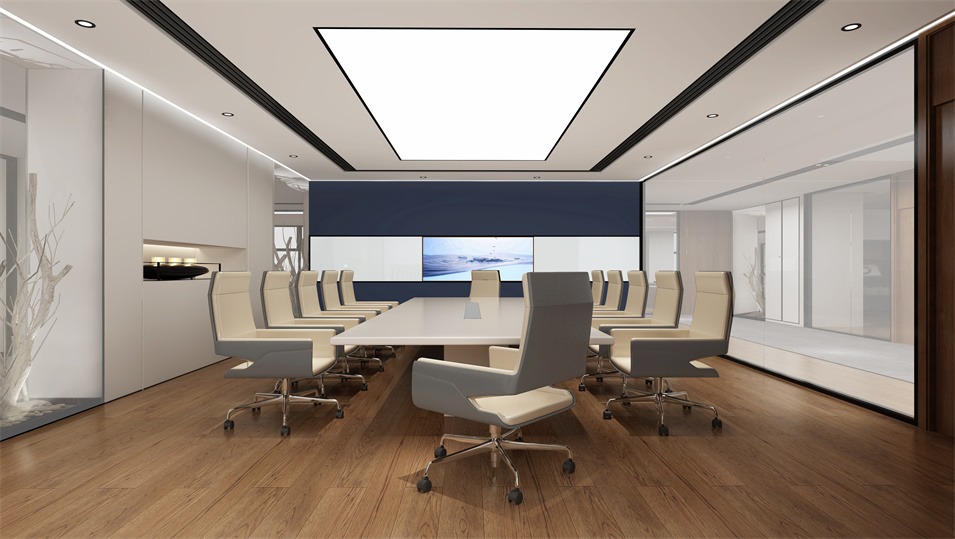 設計介紹:主要展示前臺、洽談區(qū)、走廊、貴賓區(qū)、會議室、辦公區(qū)等各個區(qū)域?qū)嵨飯D,設計師們采用現(xiàn)代簡約風格辦公室設計,主要以白色為主,藍色更符合智能化科技的公司形象,通過幾何圖形與條紋裝飾打造科技智能的辦公空間。