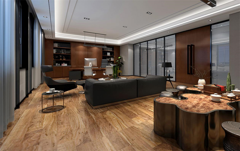 3、新中式董事長(zhǎng)辦公室設(shè)計(jì)效果圖