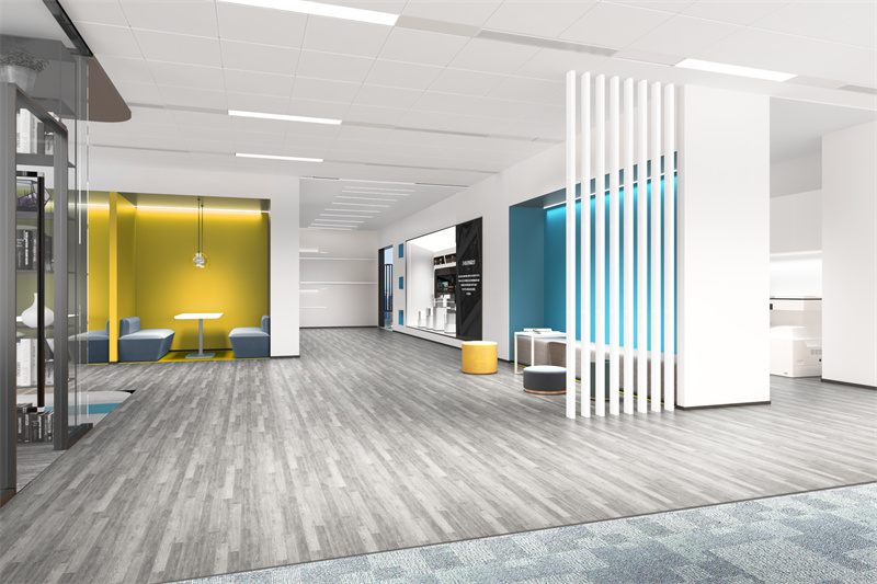 開放式辦公區(qū)域:開放式辦公區(qū)分為兩種,一種是半開放式,一種是全開放式,全開放式辦公區(qū)是指一個完全敞開的大空間,沒有任何隔斷,可以在辦公空間內的任何一個角度看到每位員工的座位,半開放式辦公區(qū)裝修公司在裝修的時候就要用高低不等的隔斷隔開以區(qū)分不同的工作部門。開放式空間辦公區(qū)的設計重點在于降低噪音干擾,在燈光設計上也要做到各個工位都能照明均勻不能有炫光產(chǎn)生。開放式辦公區(qū)域要以辦公功能和工作效率為先,對機電、空調、弱電系統(tǒng)等基礎設施的鋪設予以重點關注。