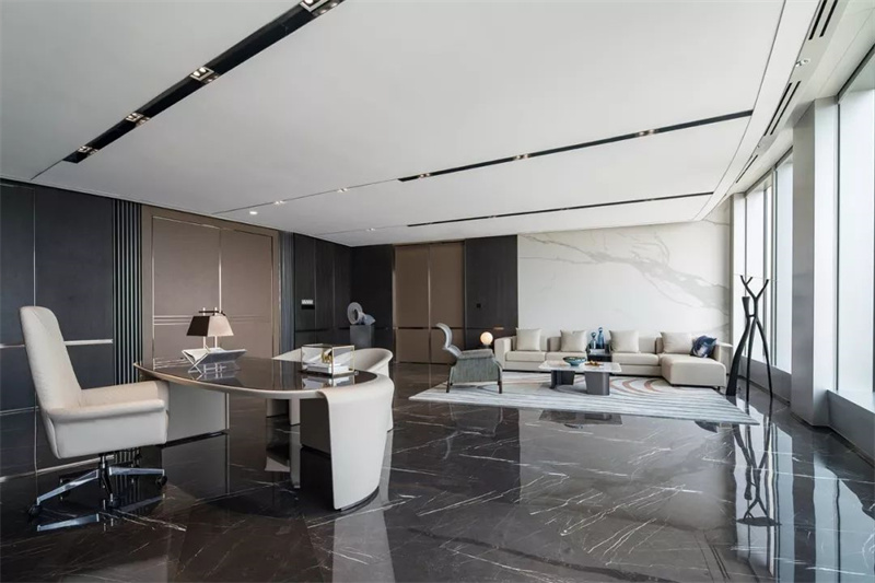 對于辦公室吊頂?shù)脑O計理念,往往設計為部分層疊吊頂和部分吊頂?shù)蹴敗_@種造型設計方法是將部分管線、工程建筑梁或照明燈做成造型吊頂,而保留其他部分的原工程建筑吊頂多用于樓層較低但相對規(guī)整的工程建筑梁的室內(nèi)空間,因為對布線管線進行合理有效的裝飾后,仍能最大限度地利用原工程建筑的高度。這種吊頂造型不僅要注意造型吊頂與原工程建筑吊頂?shù)暮椭C關系,還要注意吊頂、地面與建筑立面的關系。