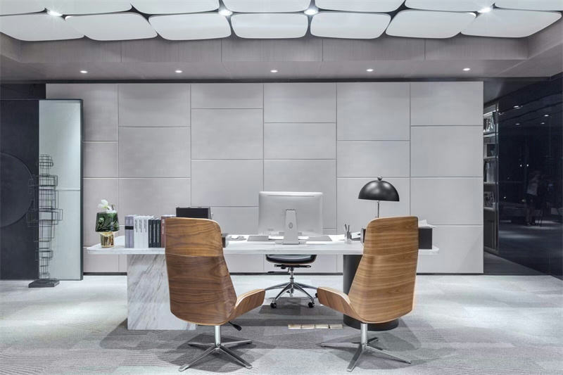 空間業(yè)態(tài)的規(guī)劃會產(chǎn)生很大的影響。創(chuàng)建一個緩沖區(qū)可以減輕這種不幸的影響。可以用展示柜或者收納柜來緩沖,可以緩解空間不通暢的尷尬局面,也可以讓實用性更高,收納空間更大,辦公室看起來更簡潔。