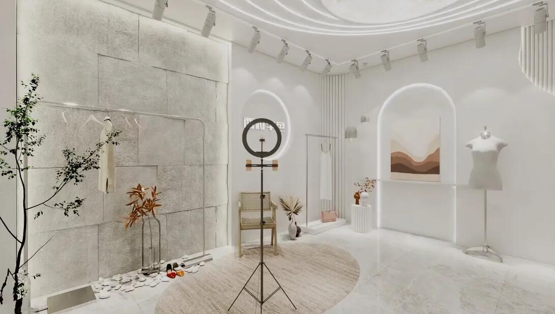 場(chǎng)地布置的很好,秒變高,直播布景干凈,溫馨,有文化。相對(duì)于衣服直播間的裝修風(fēng)格,主要是為了保證旺季產(chǎn)品的順利展示。所以衣服直播間裝修風(fēng)格簡(jiǎn)單,但是場(chǎng)地要大一點(diǎn),這樣鏡頭感會(huì)更好,燈光效果也很重要。服裝工作室的整體布局是由綠色和白色組成的。主色調(diào),另外漆皮鐵藝是北歐風(fēng)的必備元素,給人北歐風(fēng)小清新的感覺。新鮮的綠色植物絕對(duì)不可或缺。不管是真是假,小盆栽和花是一定要有的,可以起到很好的裝飾作用。直播間必須光線均勻,補(bǔ)光燈采用標(biāo)準(zhǔn)白光,營(yíng)造自然光感。