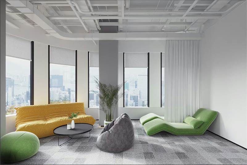 這種風(fēng)格一般適用于中小型公司。它用了很多線條,簡約時尚,喜歡用植物裝飾每個角落。通過光影的應(yīng)用效果,可以在更小的空間里做出變化。