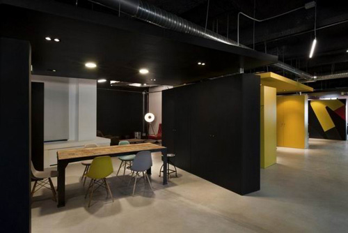 辦公室黑色噴涂頂面配白色顏色墻面,很有沖擊感。