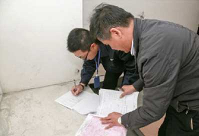 持有《上海裝修裝飾質(zhì)量檢驗師》證書的質(zhì)檢人員攜全套檢驗設(shè)備進(jìn)行專項檢查,合格后填寫階段驗收報告,并將現(xiàn)場照片及時上傳至公司系統(tǒng)。
